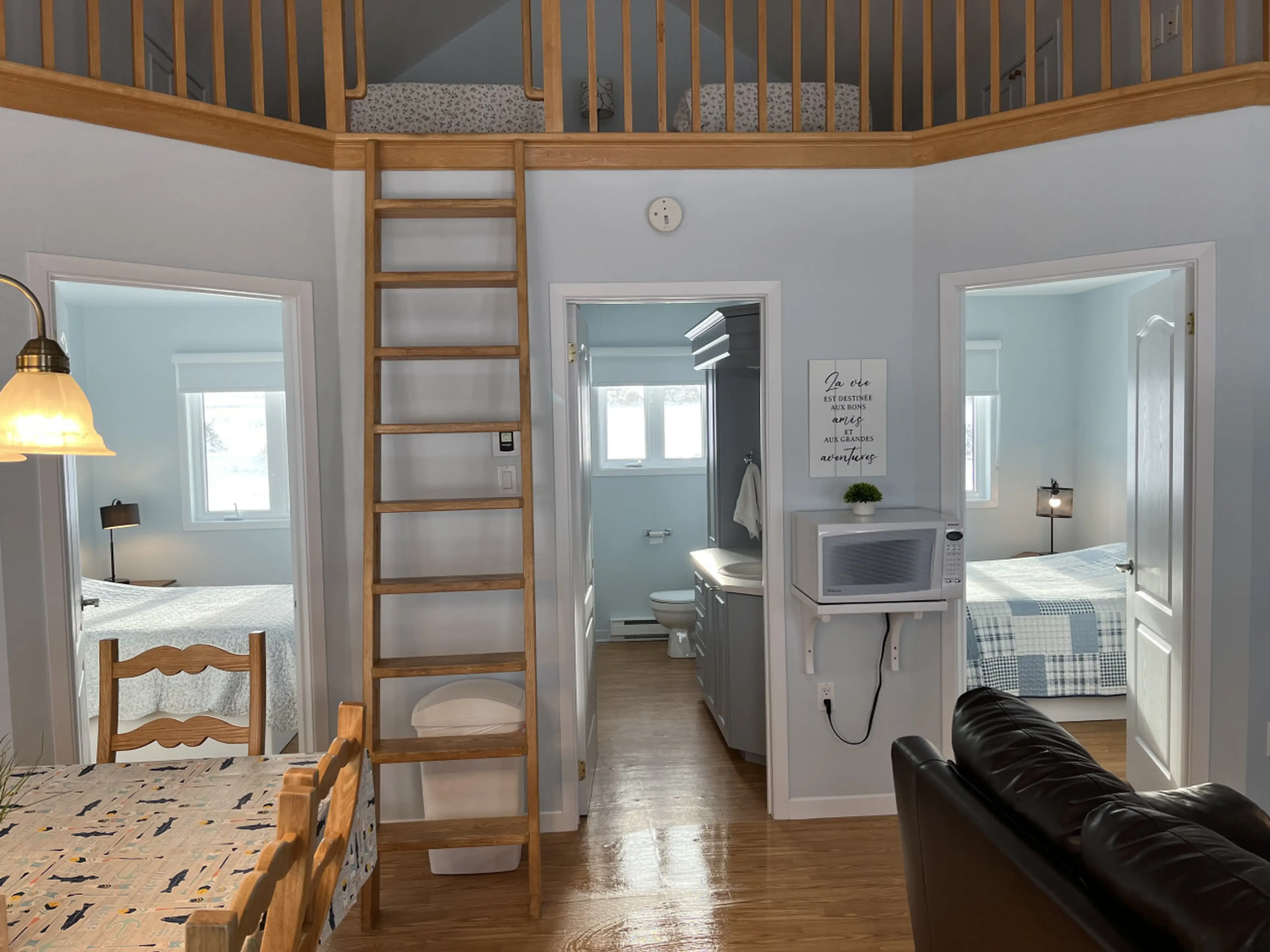 Chalets coquets avec vue sur la Dune du Sud. Salon, cuisine, chambre de bain avec laveuse-sécheuse 2 chambres fermées avec lit 54. Chambre sur mezzanine avec 2 lits 39.