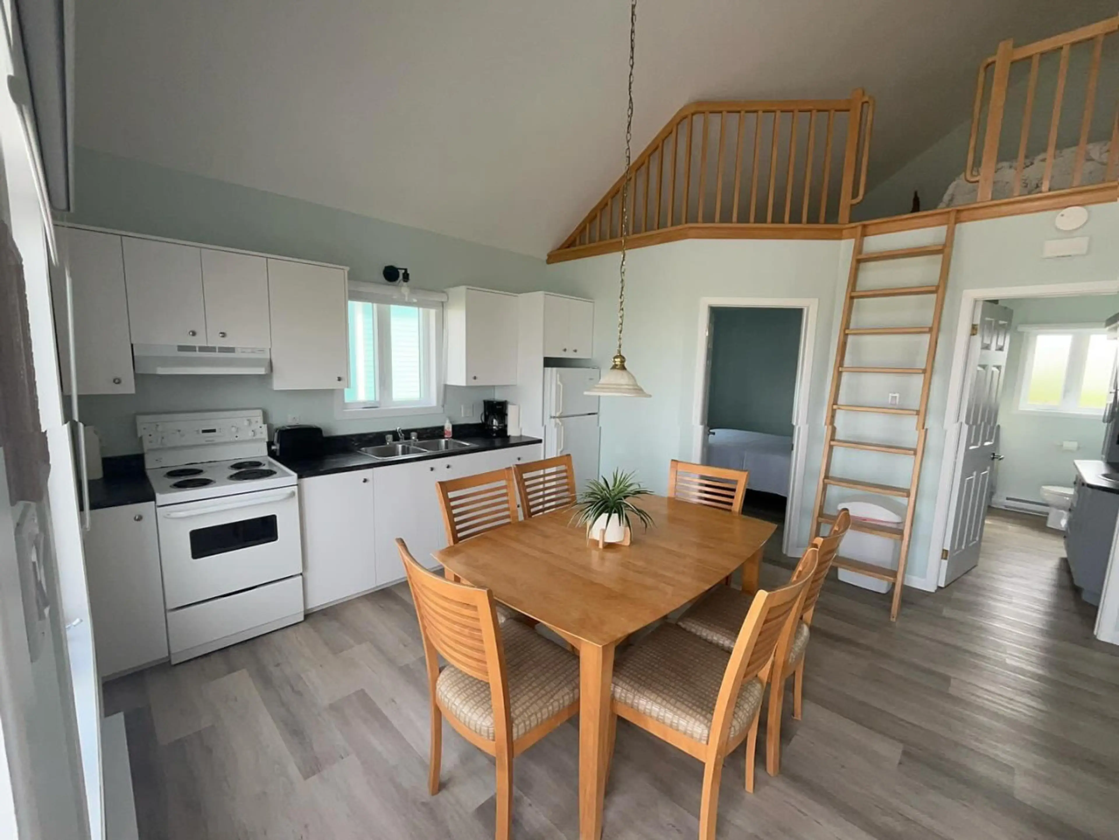 Chalets coquets avec vue sur la plage de Dune du Sud. Salon, cuisine, chambre de bain avec laveuse-sécheuse 2 chambres fermées avec lit 54". Chambre sur mezzanine avec 2 lits 39".